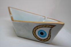 Χειροποίητο κεραμικό τασάκι σε σχήμα βάρκας με ματάκι.